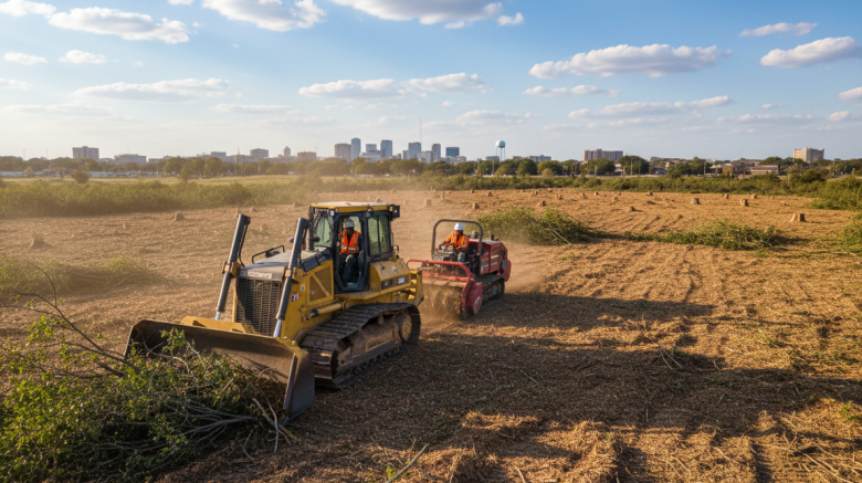 On smaller sites, forestry mulchers and skid steer mulchers are commonly used to clear mesquite, cedar, and similar vegetation. This leaves behind a fine mulch layer that reduces waste and can encourage native growth. The process is efficient and can protect desirable trees when needed.